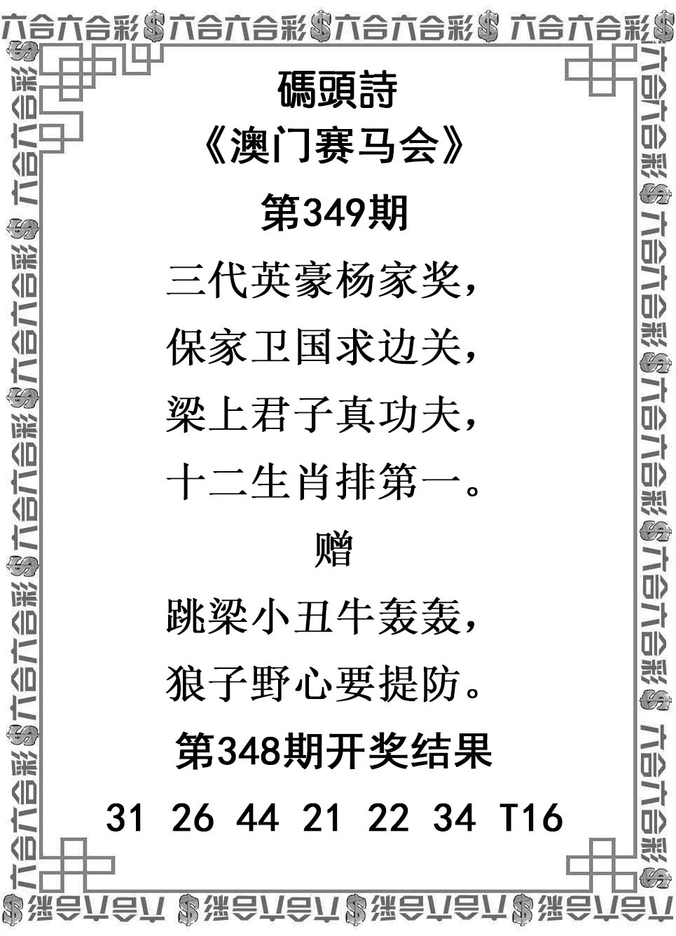 | 马 | 太子、元帅、秀才、太子、杏花 | 羊 | 相将、西宫、夫人、西宫、樱花 | 猴 | 太监、寇王、游侠、寇王、松树 |